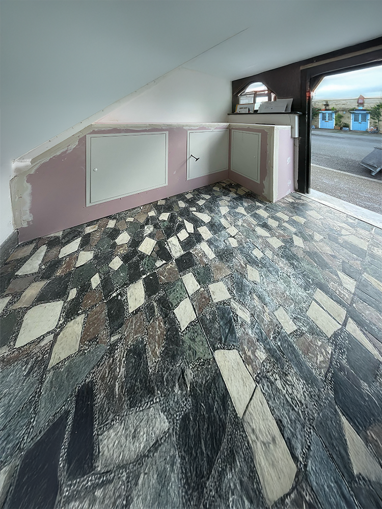 The Gyproc board is then finished with decorative edge trim and painted in a colour of the client’s choice.