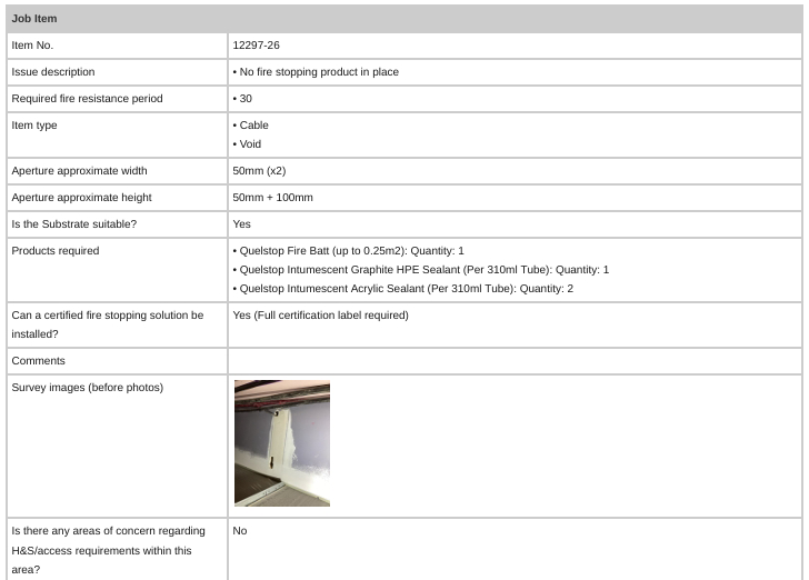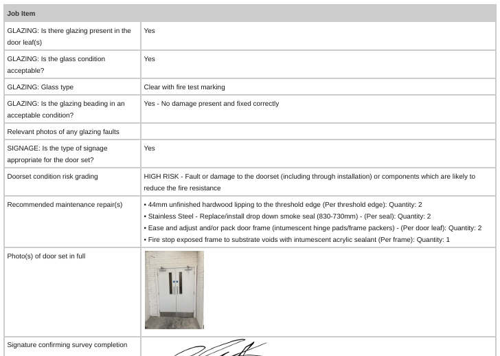Each individual door set or fire stopping issue is finalised with a specific list of recommended repairs.