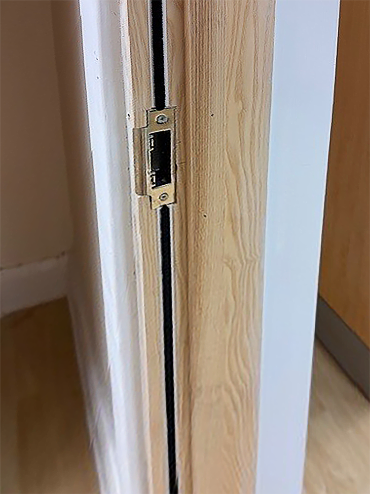 Most intumescent seals are fixed with a pre manufactured adhesive layer, into a groove within the door frame or door leaf edge. Smoke seals can become worn over time through usage and intumescent seals can loose their adhesive backing, causing them to fall out. When damaged or missing, it is important that the correctly specified intumescent seal is identified within the fire door inspection and then replaced.